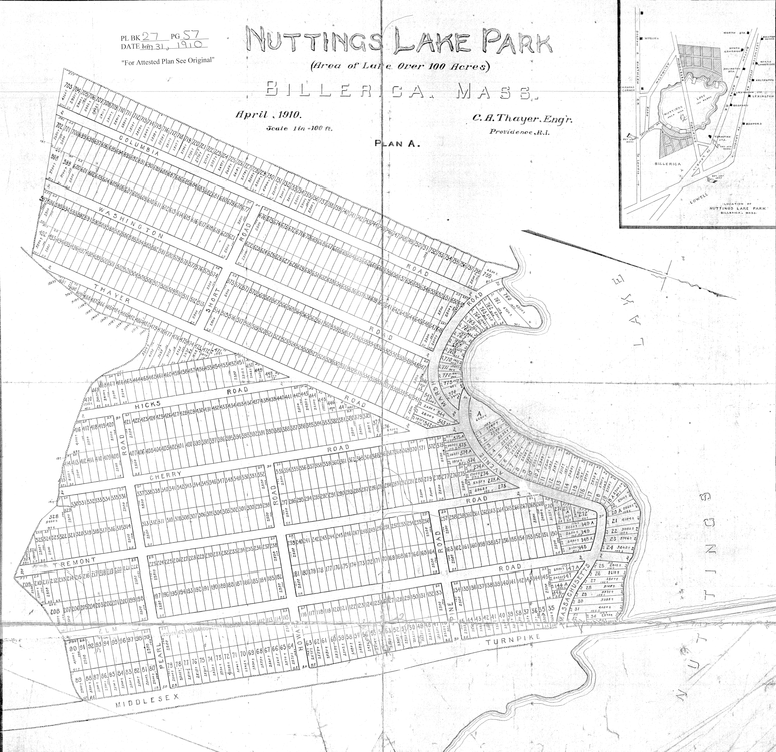 Nuttings Lake Park, 1910 (Plan Book 27 Page 57)