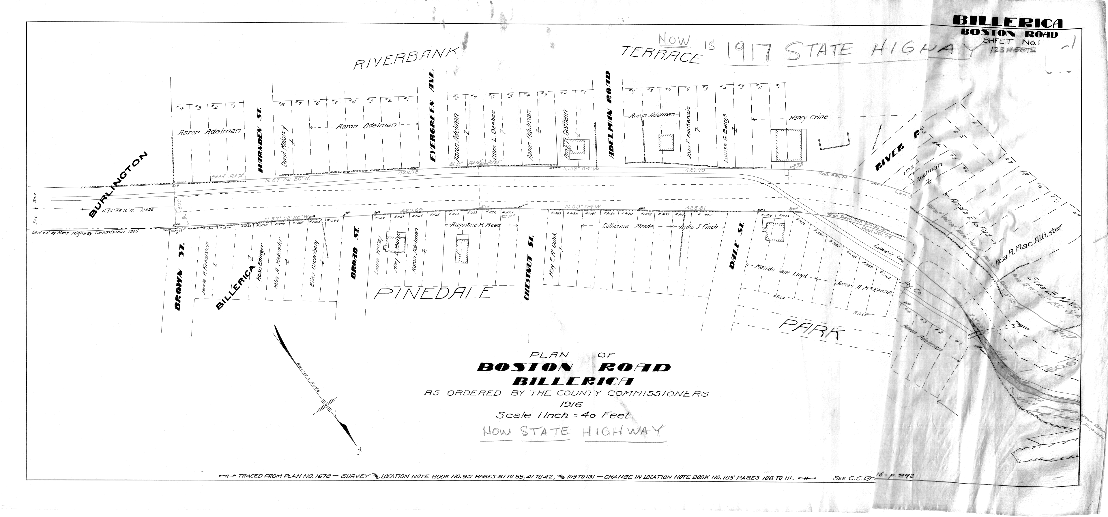Boston Road (Burlington to Tufts Ln), 1916 (Plan Book 910 Page 5)