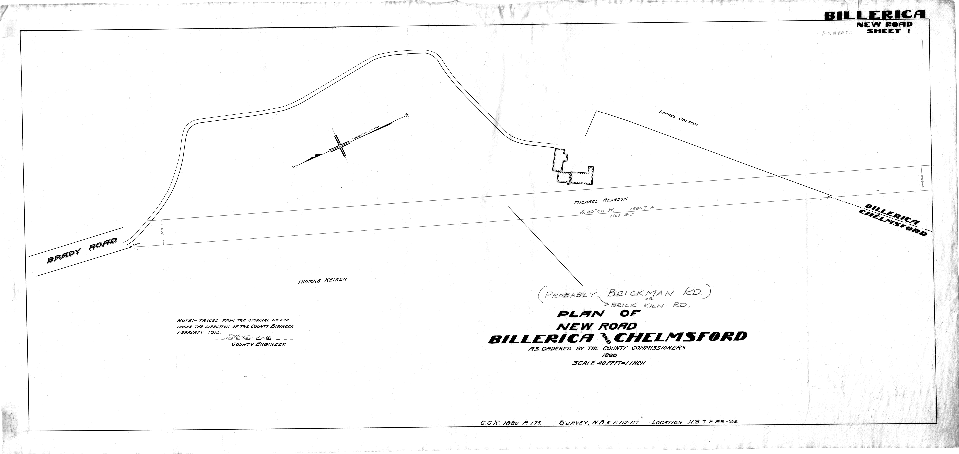 Brick Kiln Road, 1910 (Plan Book 910 Page 8)
